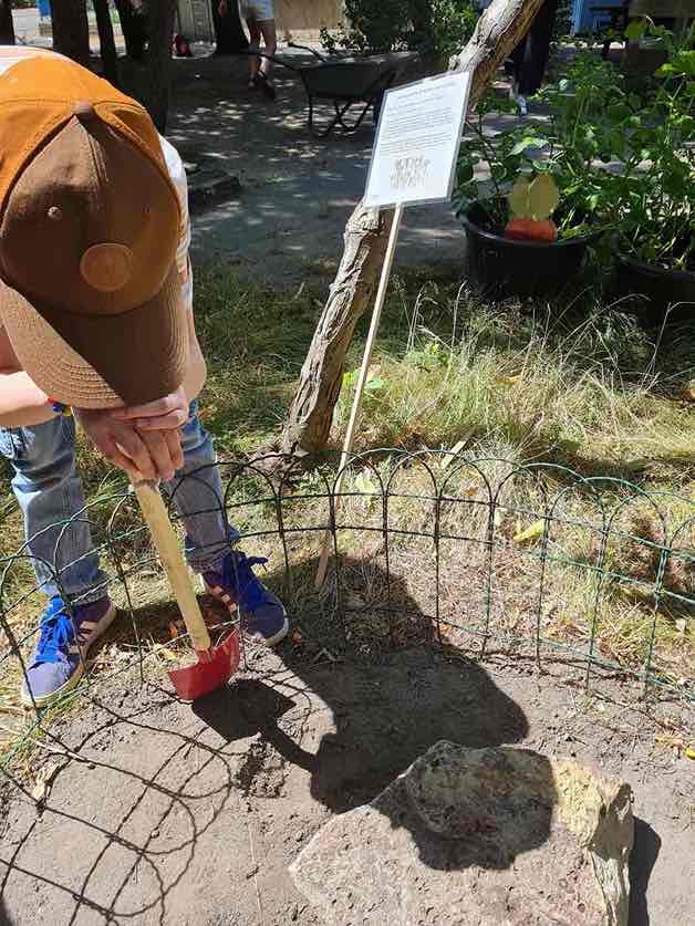 Die Garten AG lässt sich die Arbeit der Bampfleger erklären.