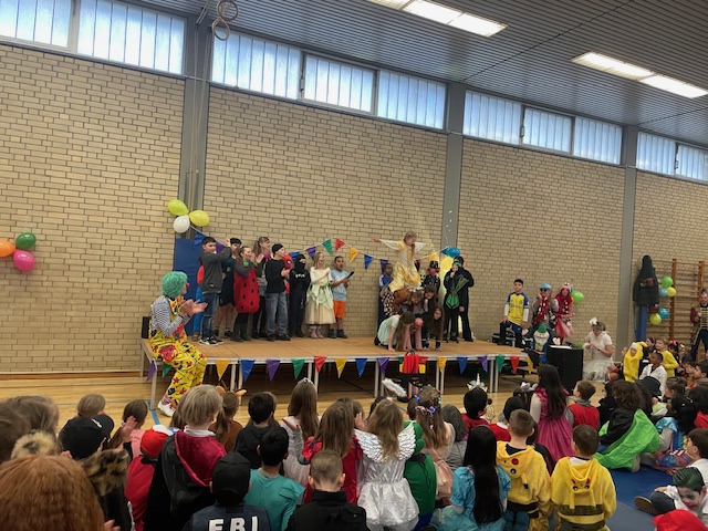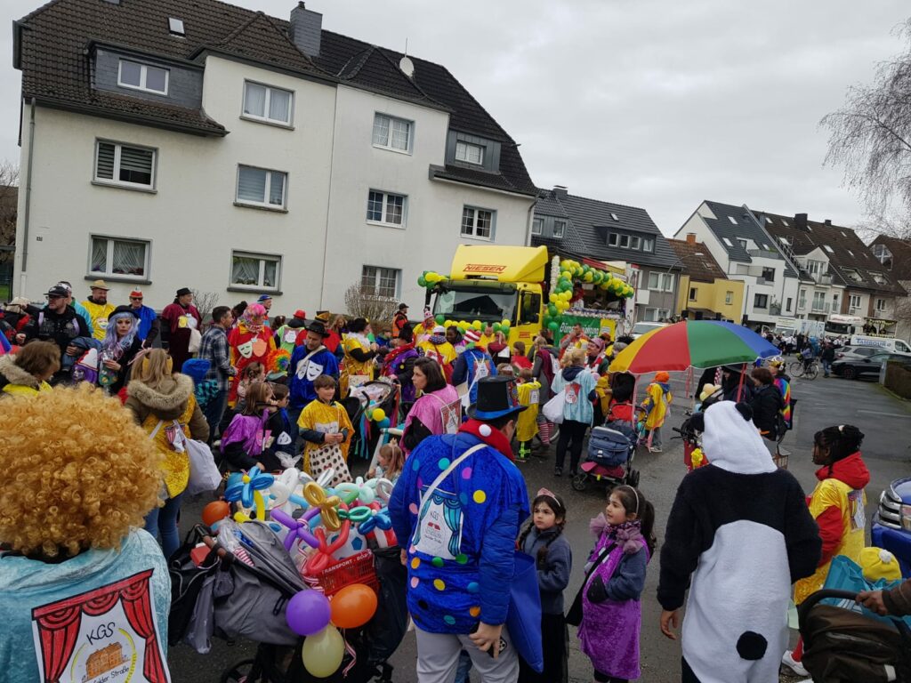 Mit Spielen, Tänzen und Buffet ließen schließlich alle diesen stimmungsvollen Vormittag gemeinsam in den Klassen ausklingen. Auch am Veedelszooch hat die Schule unter dem Motto „Wat e Theater – wat e Jeckespil“ teilgenommen und Kamellle und Strüssje verteilt.