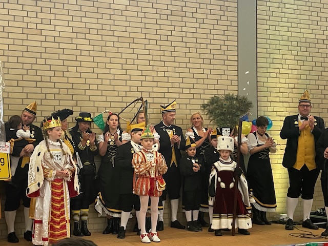 Mit bunt gemischten Showeinlagen sorgten die Klassen für eine ausgelassene Stimmung, während uns Frau Kratzheller und Herr Mersmann lustig und sehr unterhaltsam durch das Programm führten. In der Pause wurde wie jedes Jahr unter den jecken Tönen unseres schuleigenen DJs und Hausmeisters Herr Berg ordentlich weiter gefeiert und getanzt. Nach der Pause erwartete die jecken Pänz dann in der Turnhalle noch eine tolle Überraschung: Das erste Kinder-Dreigestirn von Holweide kam auf die Bühne und brachte die Halle zum Brodeln.